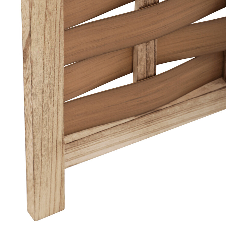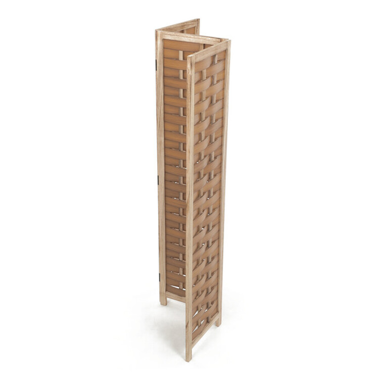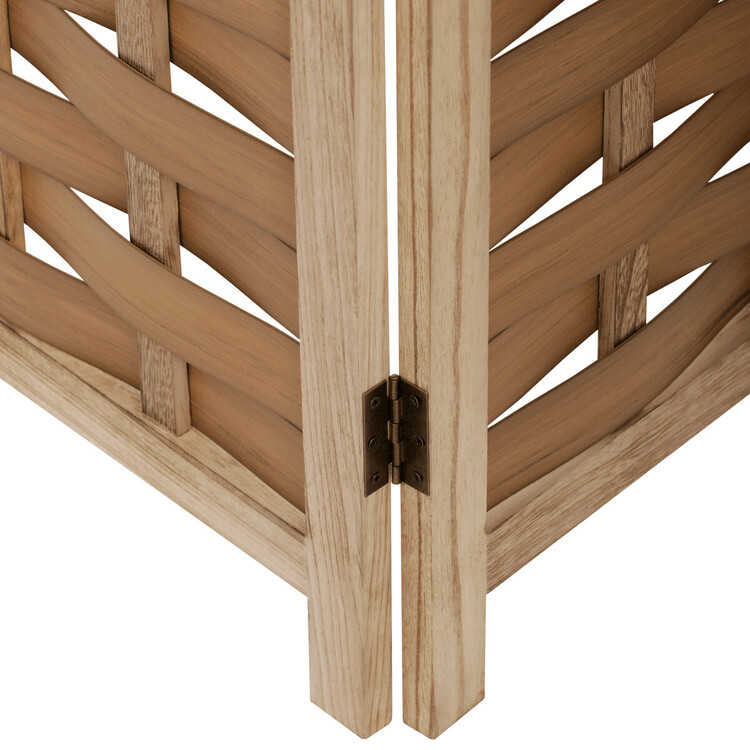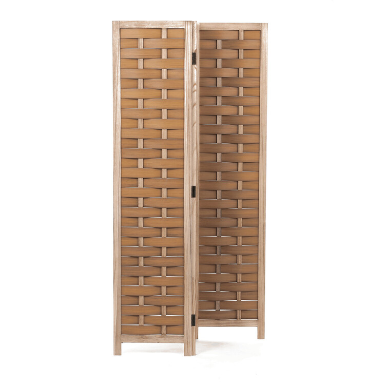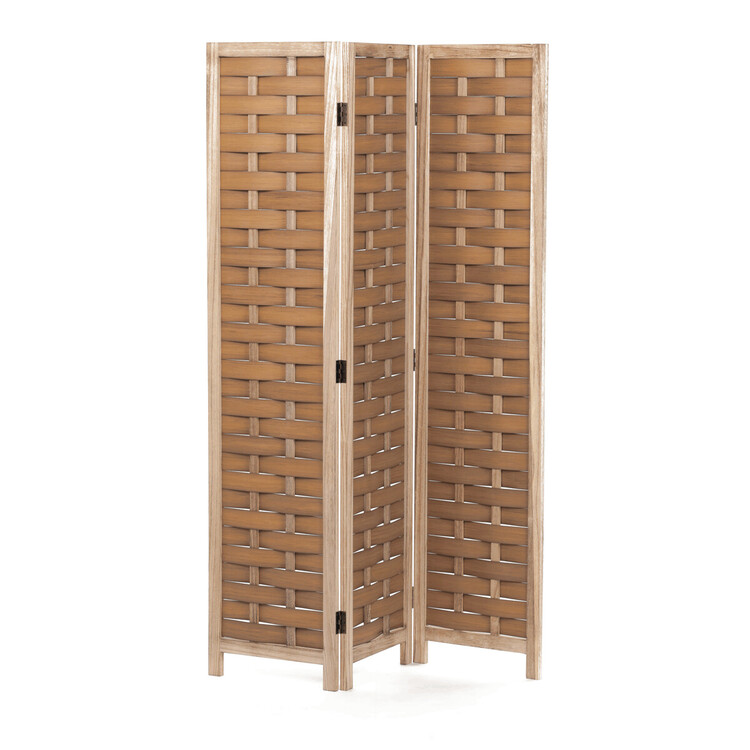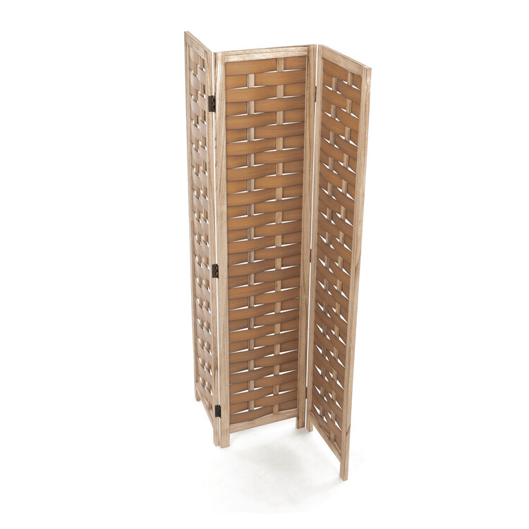 Třídílný paraván vyrobený z masivního smrkového dřeva v přírodním odstínu nabízí praktické řešení pro rozdělení prostoru či vytvoření soukromí. Jeho pevné rámy jsou doplněny propletenými PVC pásky, které vytvářejí zajímavý vzor a zároveň propouštějí světlo. Díky skládací konstrukci s kovovými panty je možné paraván snadno přemístit a přizpůsobit podle potřeby. Přírodní povrchová úprava zdůrazňuje texturu dřeva a umožňuje snadnou údržbu. Rozměry jednotlivých dílů jsou navrženy tak, aby paraván stabilně stál a zároveň byl dostatečně lehký pro manipulaci. Rozměr jednoho dílu 40×171cm.