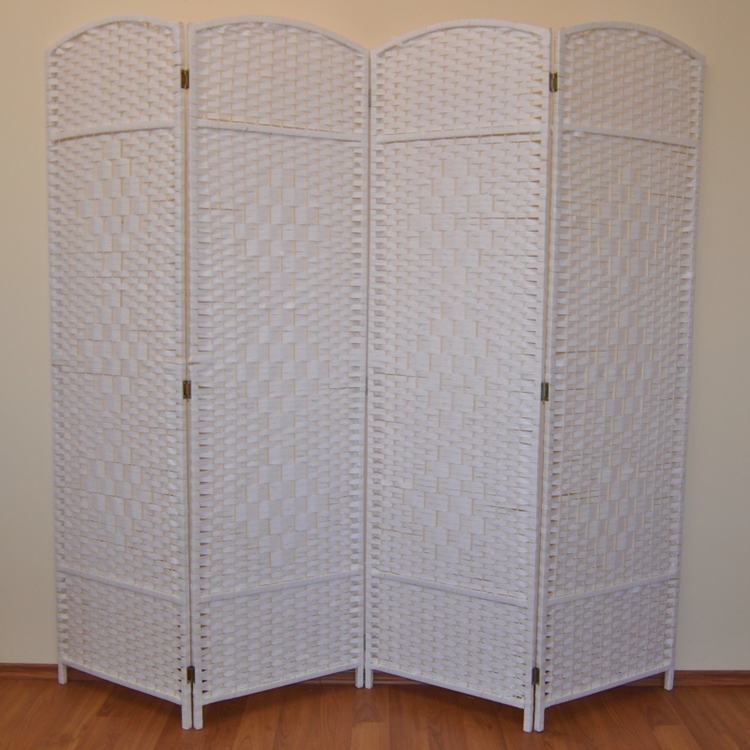 Čtyřdílný paravan je nejen vhodným bytovým doplňkem ale slouží zároveň k oddělení části vnitřních prostor.| Výška paravanu je 180 cm.Paravan se skládá ze čtyřech dílů šíře 50 cm.Materiál konstrukce je dřevo, výplet je tvořen barevnými papírovými provázky.