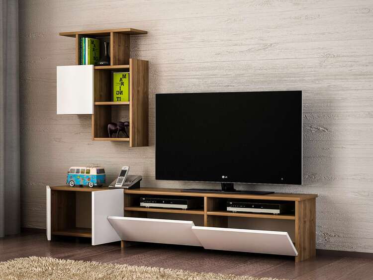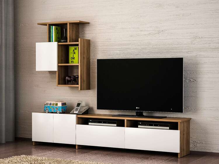 Představujeme obývací stěnu, která kombinuje klasickou eleganci s moderními prvky. S její čistě bílou barvou a akcenty ořechového dřeva je tato sestava navržena tak, aby přinesla do vašeho obývacího pokoje nejen styl, ale i funkčnost.