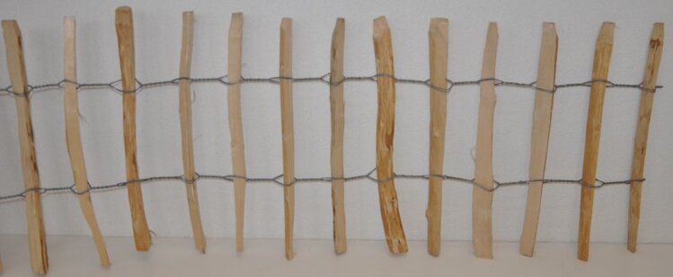 Plůtek ze štípaného dřeva svázaný silným ocelovým drátem. | Výška plotu je 50 cm.Délka plotu je 5 metrů.
