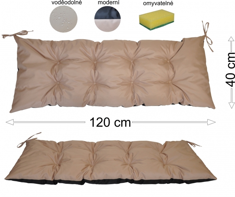 Samostatný podsedák o velikosti 120×40 cm. | Univerzální polstr o velikosti 120×40 cm.Polstr je vyrobený z voděodolné látky Oxford v béžové barvě.Spodní část polstru je vyrobena z černé voděodolné tkaniny.Polstr je plněný molitanovou drtí, která je měkká a zajišťuje trvalý... více informací o zboží