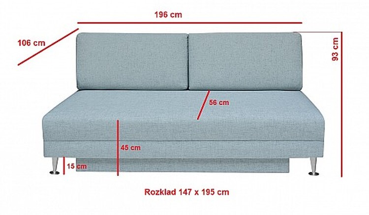 tkaninou. Pokud plánujete pohovku umístit do prostoru, lze za příplatek