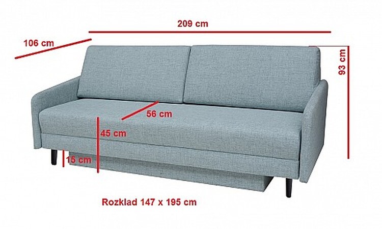 lůžkoviny, polštáře nebo deky. Dřevěné nohy doplňují celkový vzhled