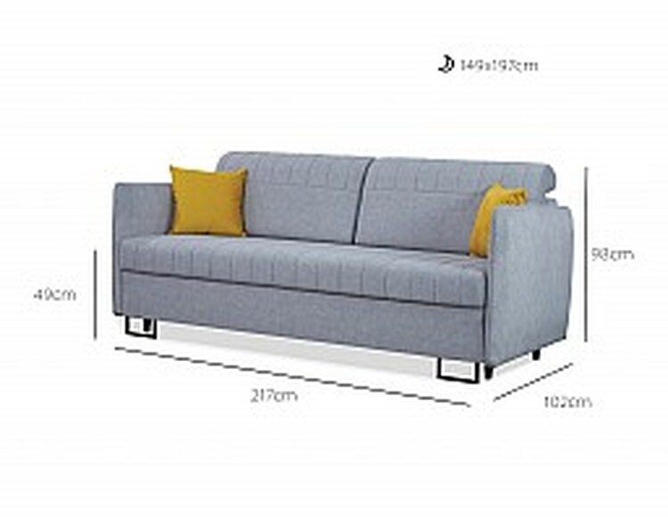 nenáročná. Plocha na spaní po rozložení činí 149 × 197 cm, což