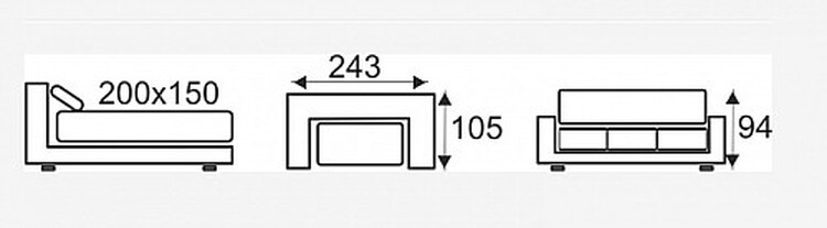 i praktické využití. S šířkou 243 cm, výškou 94 cm a hloubkou