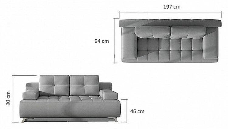 Díky čistému designu, rozměrům 197 × 90 × 94 cm a výšce sedu46 cm se hodí do většiny interiérů – ať už jako hlavní pohovka doobýváku, nebo do pokoje pro hosty.