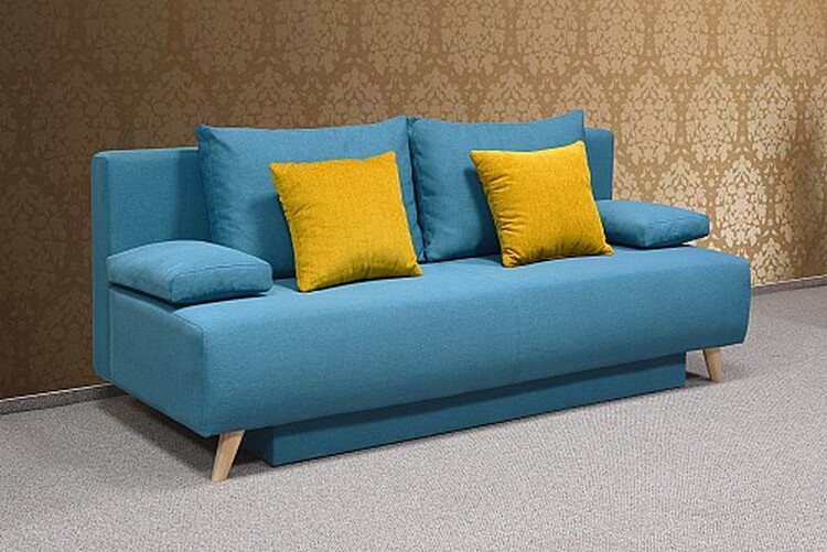 předměty. Dřevěné nohy zajišťují stabilitu a dodávají pohovce