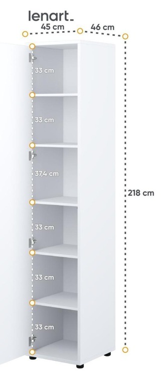 Policová skříň s dvířky bílá lesk/bílá mat. Rozměry a vnitřní prostor viz obrázky. Nábytek je vyroben z kvalitního lamina s ABS hranou. Lamino je odolné proti poškrábání, poškození, vlhkosti a vysokým teplotám. Dodáváme v demontovaném stavu.CASA 73026