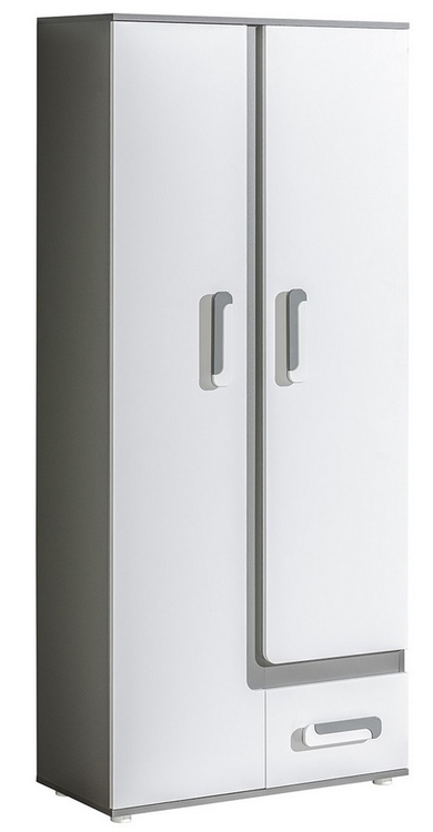 Dvoudveřová šatní skříň APETTITA ze sektorové řady, která se vyznačuje netradičním zpracováním barev a originalitou úchytů. Tento styl nábytku zaujme každou mladší generaci. Skříň je vyrobena z kvalitní LTD desky hraněné ABS lištou. Korpus je v barvě šedá antracit, dveře jsou bílé matné. Úchytky jsou v barevné kombinaci antracit/bílá. Uvnitř skříně jsou police, v dolní části je zásuvka. Sektorový nábytek APETTITA má široký výběr prvků, který Vám zaručí sestavit si dětský nebo studentský pokoj, ložnici či kancelář podle svých potřeb, přání a představ. Dodáváme v demontovaném stavu.CASA 23001