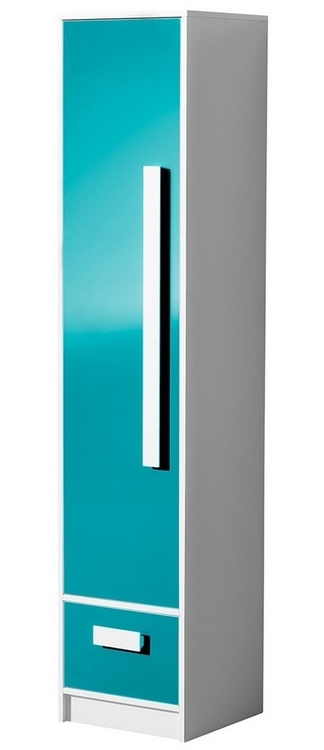 Úzká policová jednodveřová skříň se zásuvkou ze sektorové řady GULLIWER, která se vyznačuje netradičním zpracováním barev a originalitou úchytů. Tento styl nábytku zaujme každou mladší generaci. Skříň je vyrobena z kvalitní LTD desky hraněné ABS lištou. Korpus je v barvě bílá mat, dveře jsou barvě tyrkysová lesk. Úchytky jsou v barvě bílé. Sektorový nábytek GULLIWER má široký výběr prvků, který Vám zaručí sestavit si dětský nebo studentský pokoj, ložnici či kancelář podle svých potřeb, přání a představ. Dodáváme v demontovaném stavu.CASA 23002