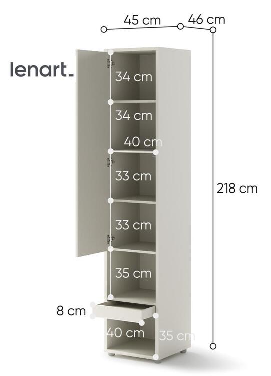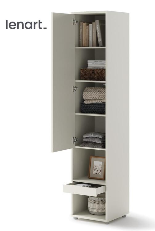 Policová skříň se zásuvkou barva kašmír (béžová s nádechem šedé). Rozměry viz obrázek. Nábytek je vyroben z kvalitního lamina s ABS hranou. Lamino je odolné proti poškrábání, poškození, vlhkosti a vysokým teplotám. Dodáváme v demontovaném stavuCASA 73026