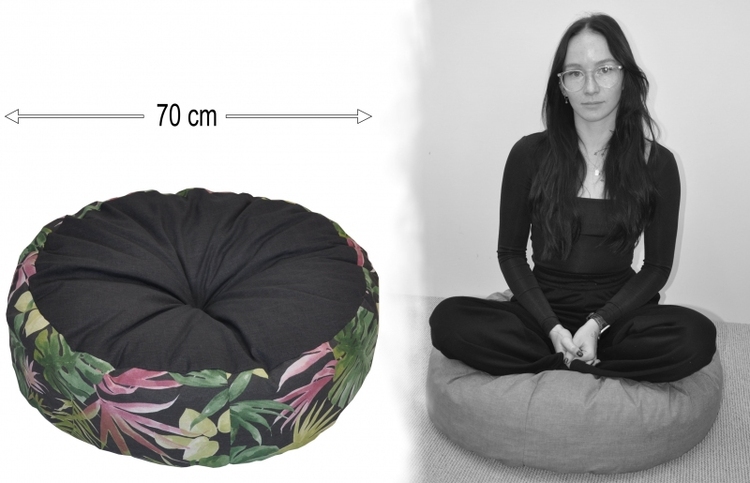 | Průměr polštáře je 70 cm.Výška polštáře je 20 cm.Polštář je plněný molitanovou drtí, která zaručí příjemné sezení.