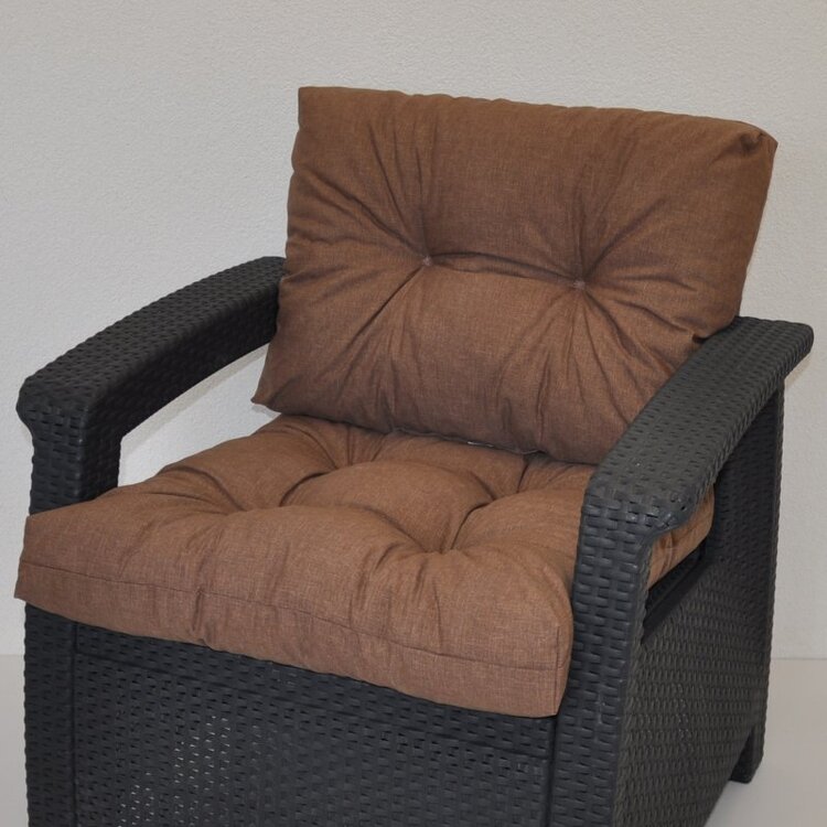 Univerzální polstr na křeslo z umělého ratanu nebo na plastová křesla imitující umělý ratan. | Polstr se skládá ze sedáku a opěrky.Velikost sedáku je 58×58 cm.Velikost opěrky je 58×40 cm.Tloušťka polstru je přibližně 10 cm.