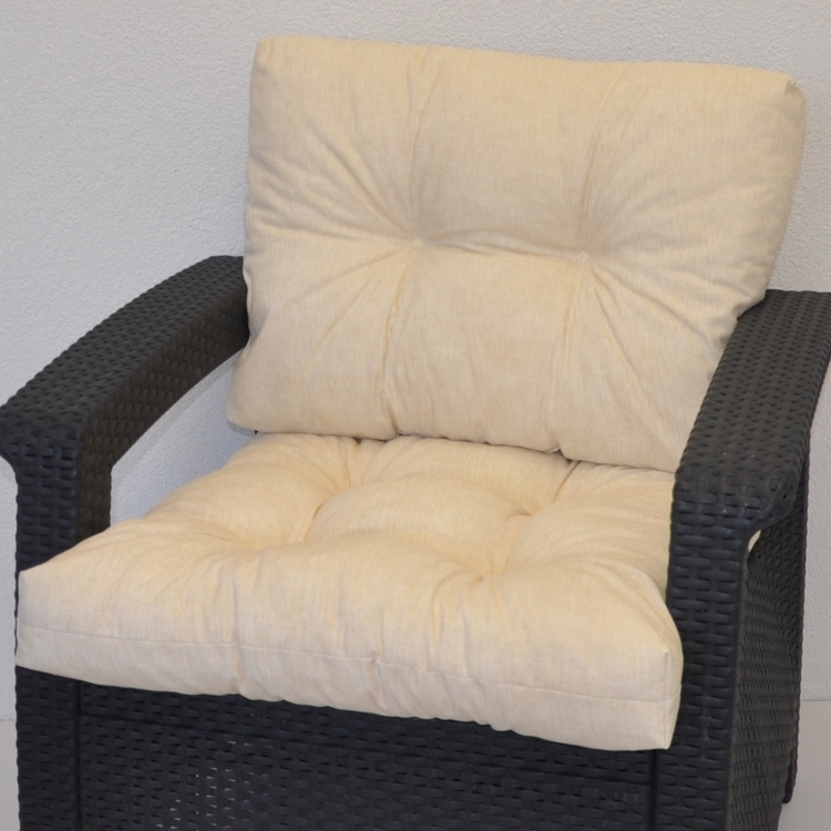 Univerzální polstr na křeslo z umělého ratanu nebo na plastová křesla imitující umělý ratan. | Polstr se skládá ze sedáku a opěrky.Velikost sedáku je 58×58 cm.Velikost opěrky je 58×40 cm.Tloušťka polstru je přibližně 10 cm.