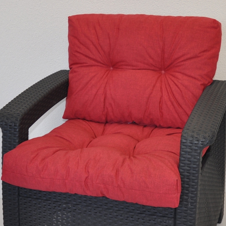Univerzální polstr na křeslo z umělého ratanu nebo na plastová křesla imitující umělý ratan. | Polstr se skládá ze sedáku a opěrky.Velikost sedáku je 58×58 cm.Velikost opěrky je 58×40 cm.Tloušťka polstru je přibližně 10 cm.