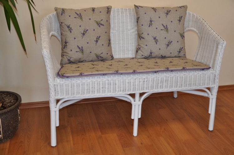 Samostatný polstr s polštářky na ratanovou lavici Fabion. | Materiál látky je 100% bavlna, výplň je molitan tloušťky 2 cm.