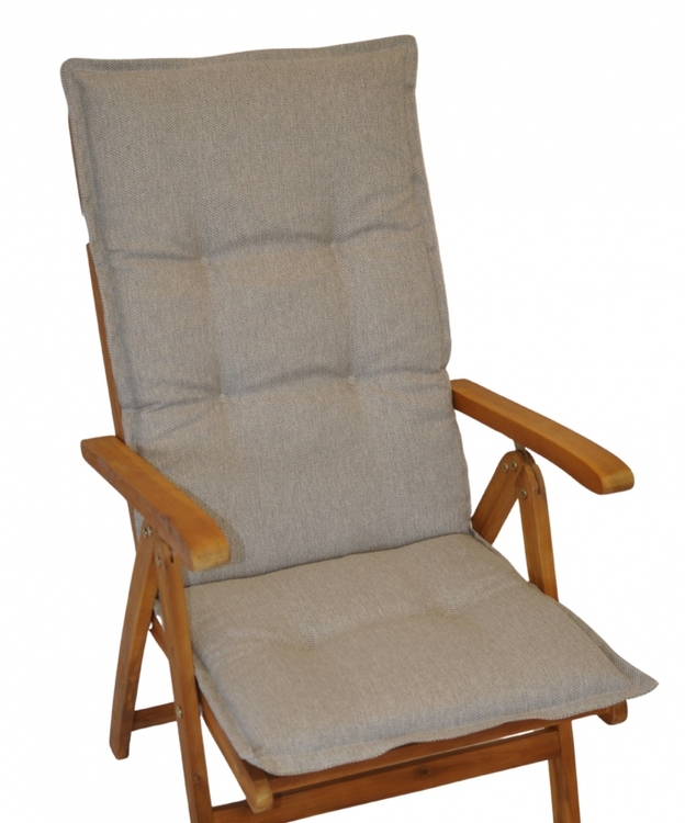Samostatný polstr na teakové zahradní křeslo s vysokým opěradlem a stavitelnou polohou opěradla.