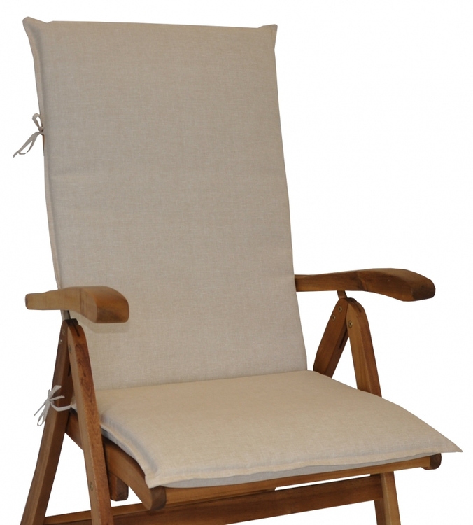 Samostatný polstr na teakové zahradní křeslo s vysokým opěradlem a stavitelnou polohou opěradla.