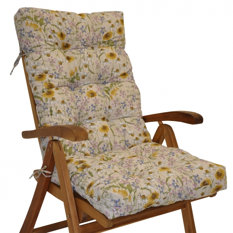 Polstr na teakové zahradní křeslo vysoké - látka motiv luční kvítí