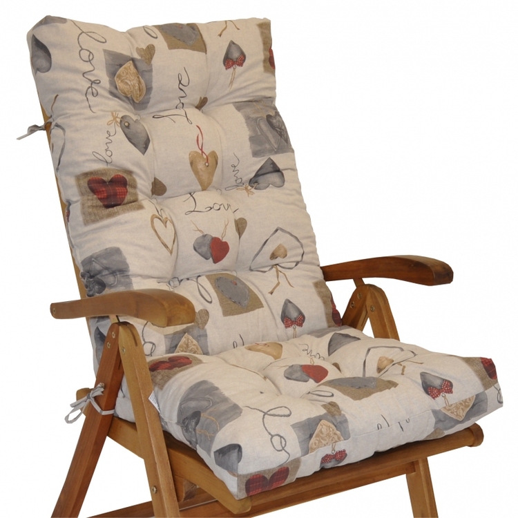 Polstr na teakové zahradní křeslo vysoké - látka motiv srdce LOVE