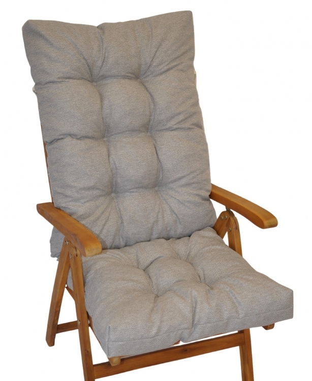Samostatný polstr na teakové zahradní křeslo s vysokým opěradlem a stavitelnou polohou opěradla.