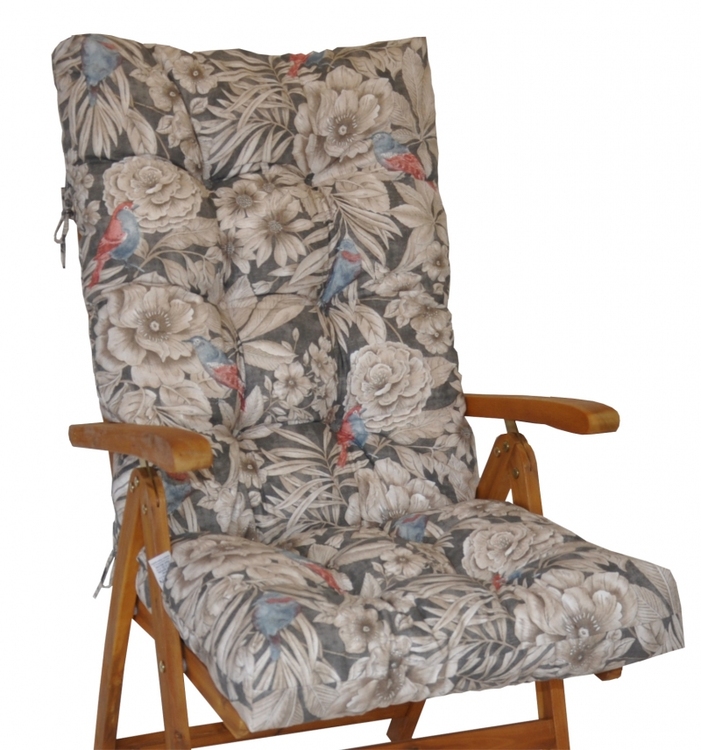 Polstr na teakové zahradní křeslo vysoké - motiv ptáci na tmavé