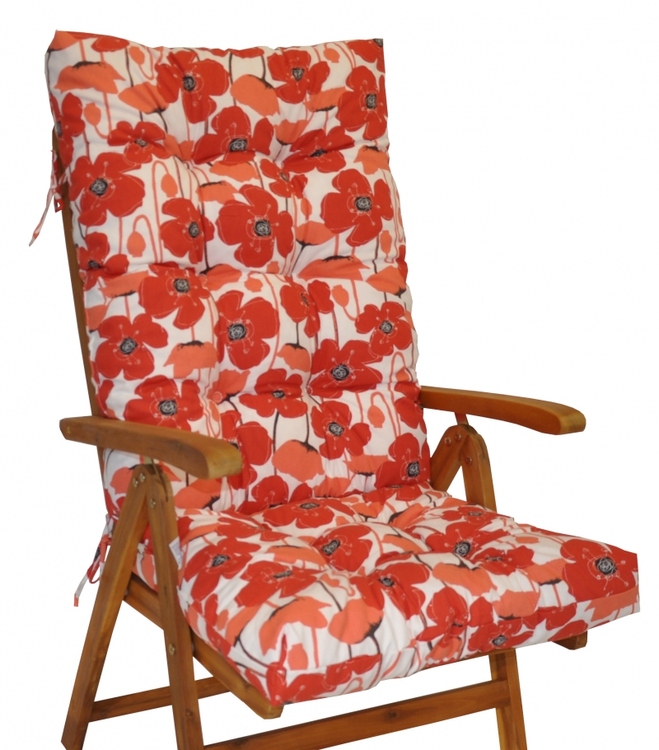 Polstr na teakové zahradní křeslo vysoké - vlčí máky červené