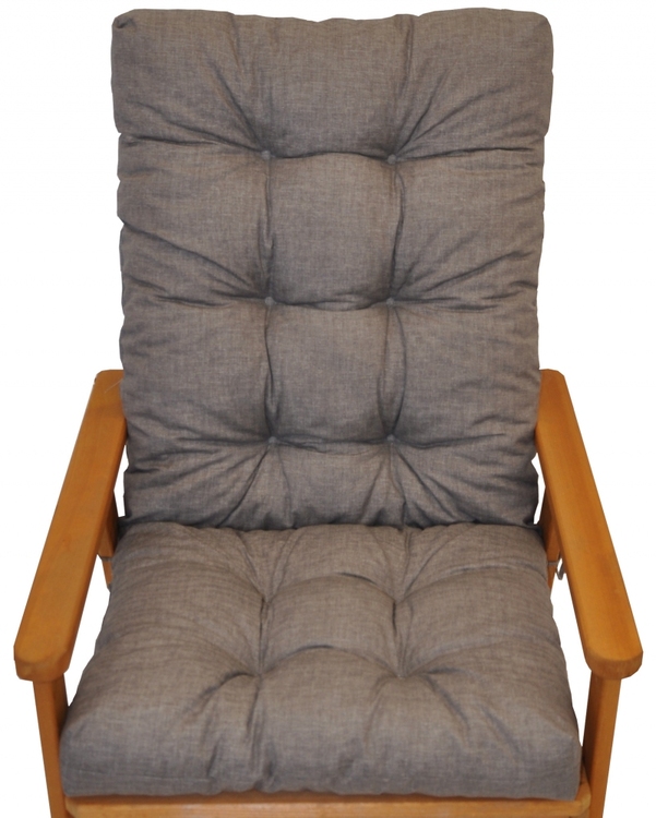 Samostatný polstr na dřevěné zahradní křeslo s vysokým opěradlem.