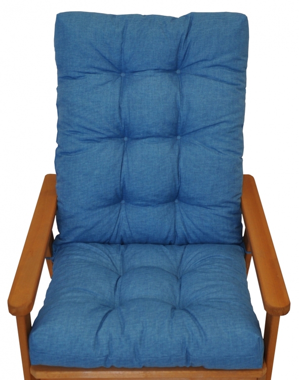 Samostatný polstr na dřevěné zahradní křeslo s vysokým opěradlem.