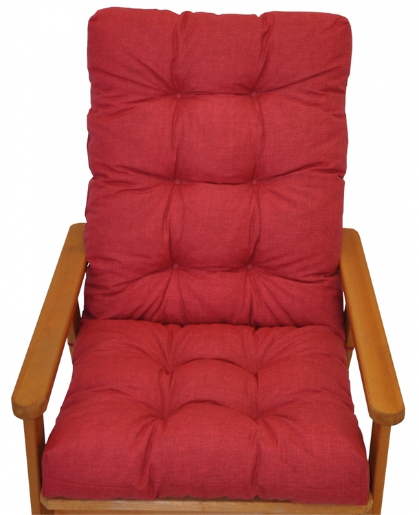 Samostatný polstr na dřevěné zahradní křeslo s vysokým opěradlem.