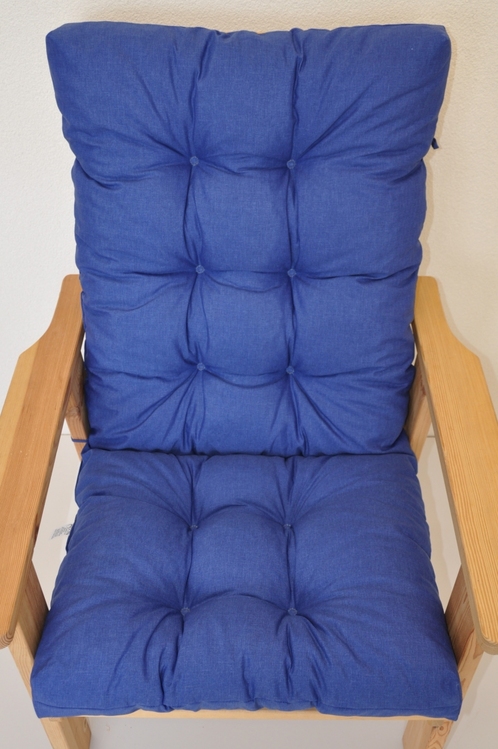 Samostatný polstr na dřevěné zahradní křeslo s vysokým opěradlem.