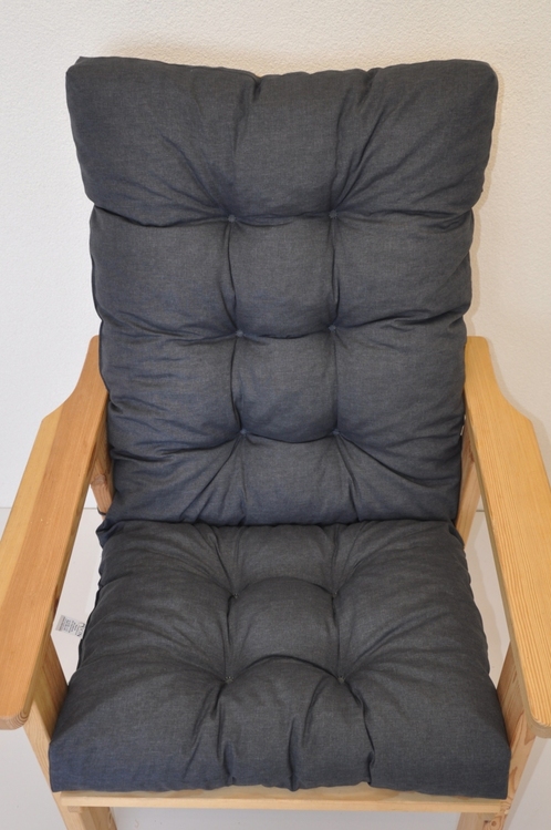 Samostatný polstr na dřevěné zahradní křeslo s vysokým opěradlem.