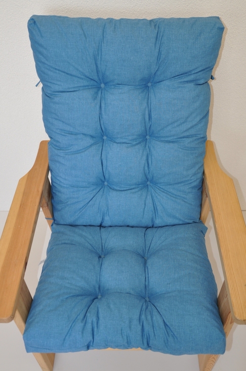 Samostatný polstr na dřevěné zahradní křeslo s vysokým opěradlem.