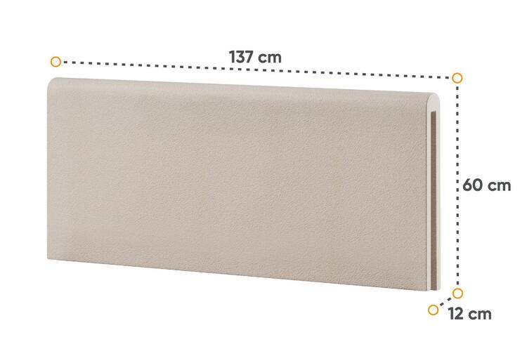 Polstrovaný záhlavník k posteli (LY-08) pro vetší komfort postele. Rozměry viz obrázek. Vyroben je z polyuretanové pěny (PUR) potažený látkou Naomi 3417 v béžovém odstínu.