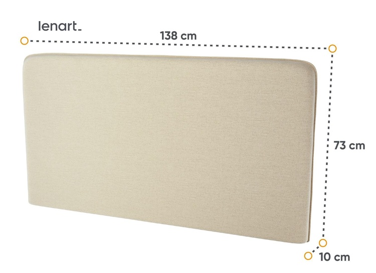 Komfortní polstrovaný záhlavník k vysoké posteli široké 140 cm Bed Concept pro vetší pohodlí. Rozměry viz obrázek. Vyroben je z pevné polyuretanové pěny (PUR) potažený látkou 100% PES ART-82610 v barvě béžová. V nabídce máme i jiné barevné provedení.