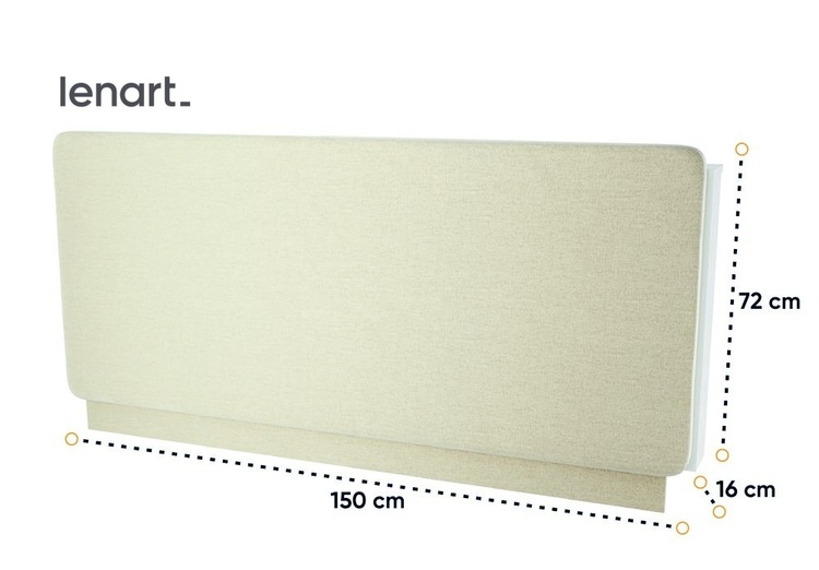 Komfortní polstrovaný záhlavník k vysoké posteli široké 140 cm Concept Pro bílá pro vetší pohodlí. Rozměry viz obrázek. Vyroben je z pevné polyuretanové pěny (PUR) potažený látkou 100% PES ART 82610 v barvě béžová. V zadní části je police bílé barvy. V nabídce máme i jiné barevné provedení.... více informací o zboží