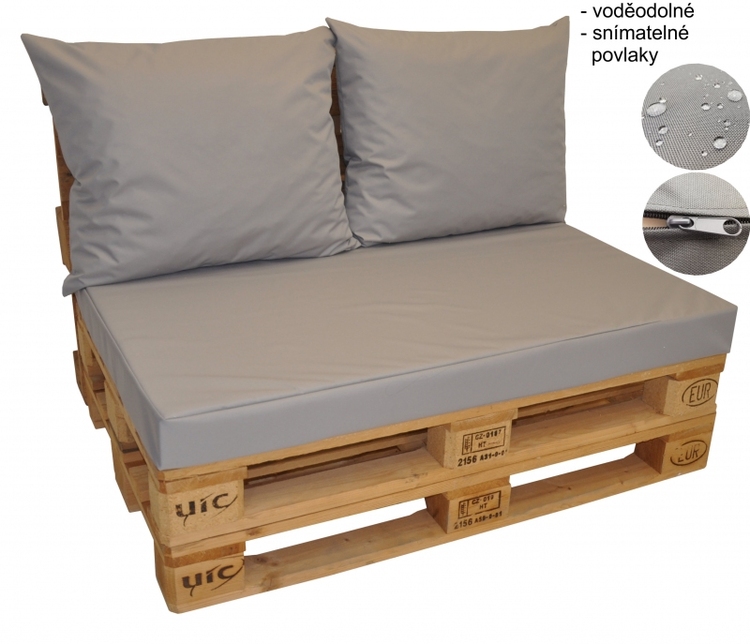 Polstry jsou vyrobeny z kvalitní voděodolné látky Oxford 600D.Všechny povlaky paletových polstrů jsou snímatelné a zapínatelné na zip.Polstry na paletové sezení jsou vyrobeny v České republice.