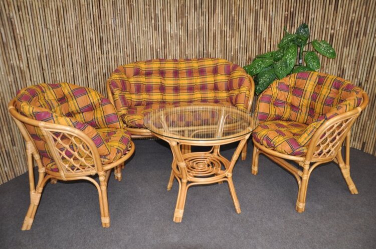 Souprava náhradních polstrů na Soupravu Bahama velká v provedení dle obrázku | Souprava se skládá z polstrů na 2 křesla Bahama a pohovku Bahama.Materiál potahové látky 100% bavlna, výplň molitan.Polstry lze prát ručně na 40 oC nebo čistit v čistírně.Polstry jsou vyráběny v České republice.Sedák křesla je kruhový a má průměr 50 cm.Opěrka křesla je široká 106 cm a její výška je 37 cm.Sedák pohovky má velikost 96 × 50 cm, opěrka pohovky má velikost 150 × 37 cm