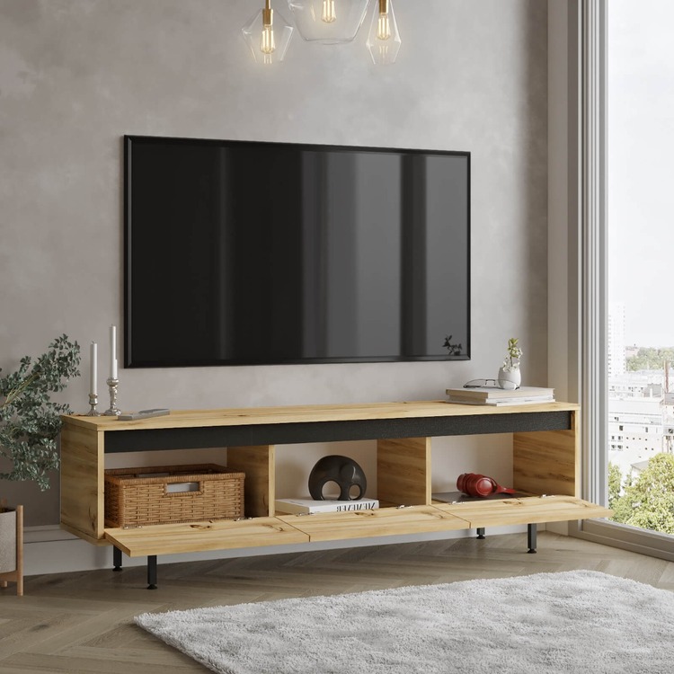 Televizní stolek je nejen praktickým kouskem nábytku, ale také výrazným designovým prvkem. Jeho jednoduchost, kombinovaná s výraznými detaily, z něj dělá středobod každého moderního obývacího pokoje nebo kanceláře.