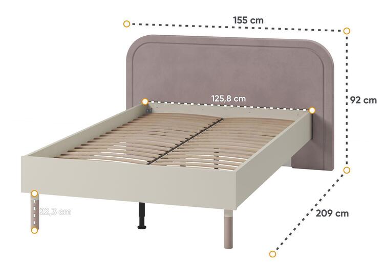 Postel s laťovým roštem v ceně a krásným čelem postele. Nábytek pro teenagery, který díky něžnosti hlavně ocení divky, nabízí moderní a praktické řešení do pokojů. Kombinace kašmírové a lanýžové barvy vytváří elegantní a univerzální design. Vyniká zaoblenými čely, asymetrickým stylem a štíhlými nožkami, které dodávají lehký vzhled. Vyroben je z odolné laminované desky o tloušťce 16 mm. Ideální volba pro stylový a funkční prostor. Vhodná matrace je 120 × 200 cm. Dodáváme v demontovaném stavu.