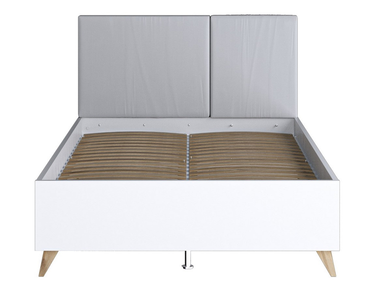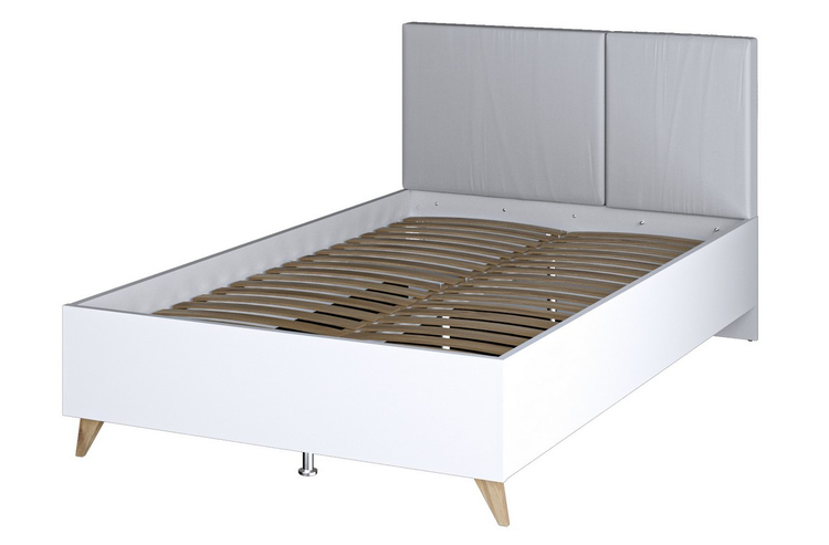 Postel 120 cm je vyrobena z desky LTD hraněné páskou ABS, korpus je v barvě bílá alpská. Čelo postele je doplněno polstrováním v šedé barvě. Nožky mají netradiční zkosený tvar a jsou v barvě dub castello medový. Postel má lamelový rošt v ceně, matraci je třeba dokoupit, Vhodný rozměr matrace je 120 × 200 cm. Dodáváme v demontovaném stavu.CASA 73036