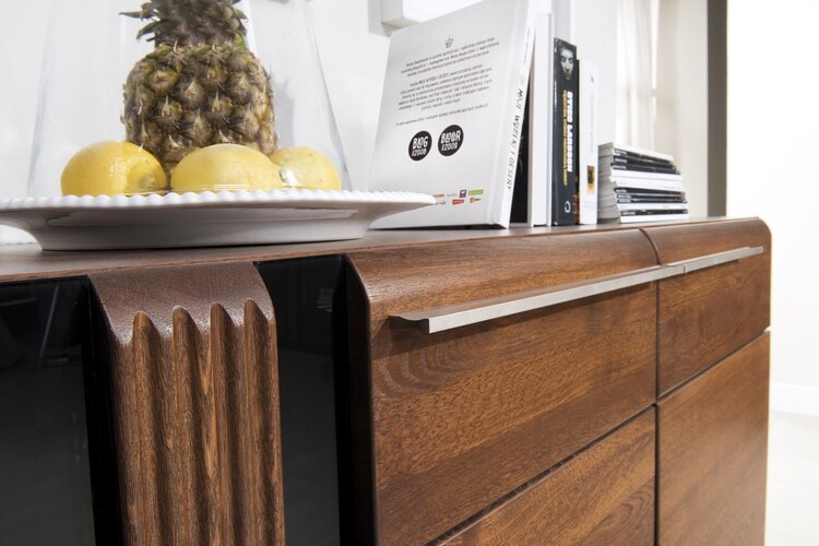 Postel 160 × 200 ze sektorové řady PORTI. Systém je exkluzivní kolekce navržena v moderním duchu. Struktura ušlechtilého masivního dubu na přední straně a přírodní dýha na korpusu zdůrazňuje velmi klasickou barvu antický dub. Opakující se prvek riflování v kombinaci s černým sklem je dekorační... více informací o zboží