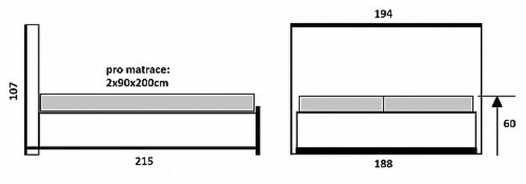 Postel je dodávána bez matrace, vhodné jsou dvě matrace o velikosti
