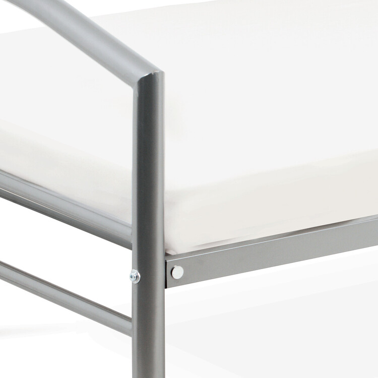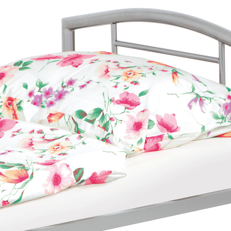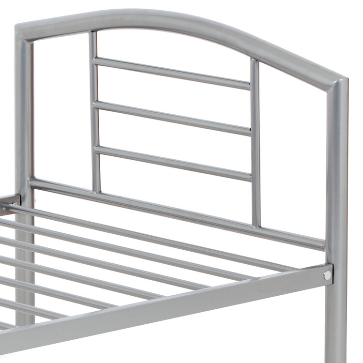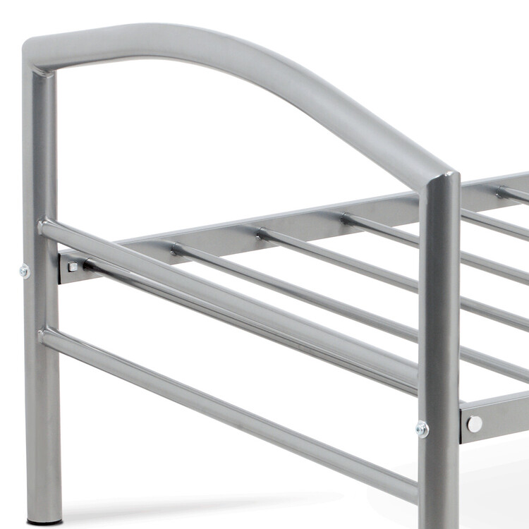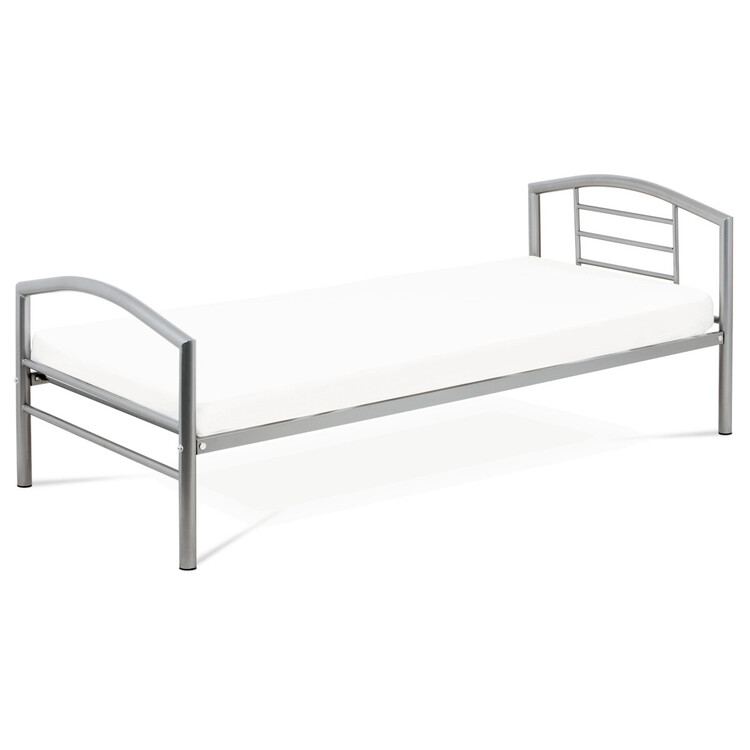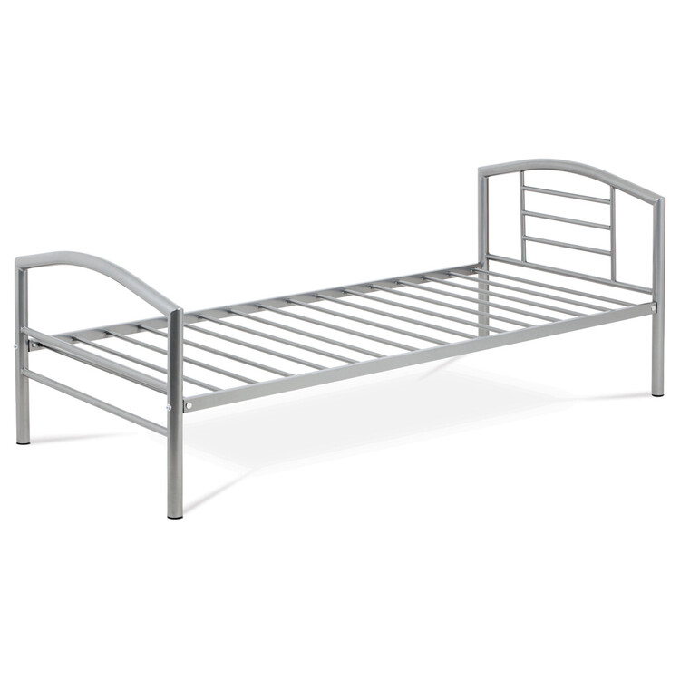 Jednolůžková postel o rozměru 90×200 cm v šedém matném provedení je vyrobena z pevného kovu, který zajišťuje stabilitu a dlouhou životnost. Rám postele tvoří jednoduché, ale pevné kovové profily s obloukově tvarovanými čely, která dodávají lehkost a moderní vzhled. Ložná plocha je tvořena kovovými latěmi, které poskytují dostatečnou oporu matraci a zároveň umožňují cirkulaci vzduchu. Povrchová úprava v matném stříbrném lesku je odolná vůči poškrábání a snadno se udržuje. Postel je vhodná pro standardní jednolůžkové matrace a díky své konstrukci je ideální do studentských pokojů, hostinských prostor nebo menších ložnic.