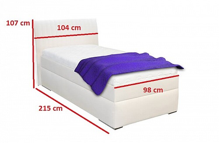 Výška bočnice 44 cm, zapuštění matrace pod bočnici je7 cm. (Příklad je-li výška matrace 20 cm, výška sedu je57 cm).