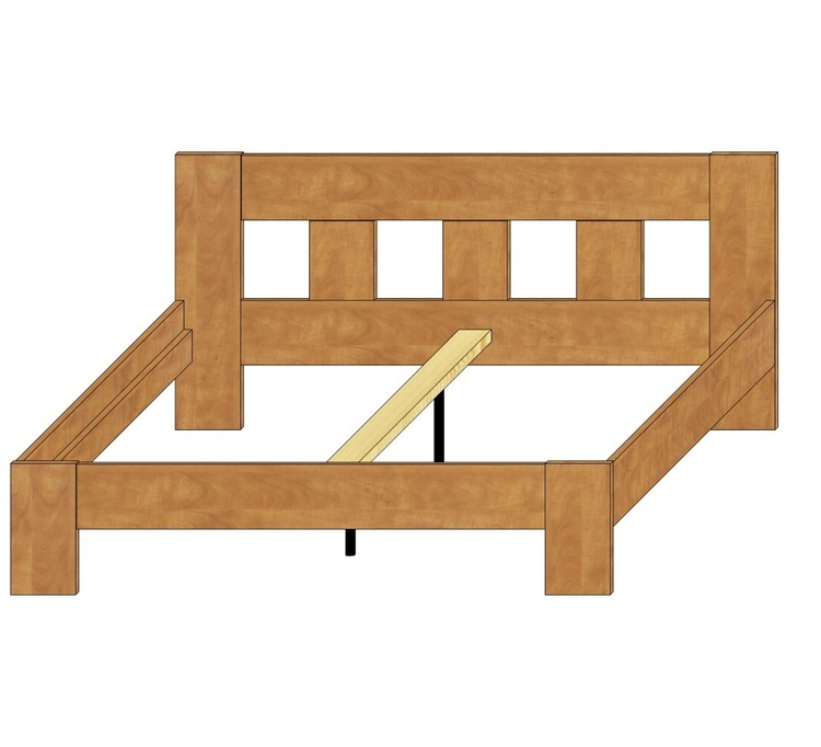 Bočnice postele jsou osazeny dřevěnými hranolky pro položení roštů,