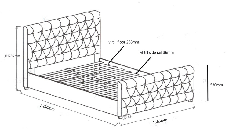 Elegantní postel originálního vzhledu s výrazným prošívaným vysokým čelem. Konstrukce je potažena krásnou modrou látkou. Nožky postele jsou v barvě tmavý ořech a mají výšku 6,8 cm. Rošt je v ceně, ale matrace je třeba doobjednat. Vhodný rozměr 180 × 200 cm. Dodáváme v demontovaném stavu.CASA... více informací o zboží