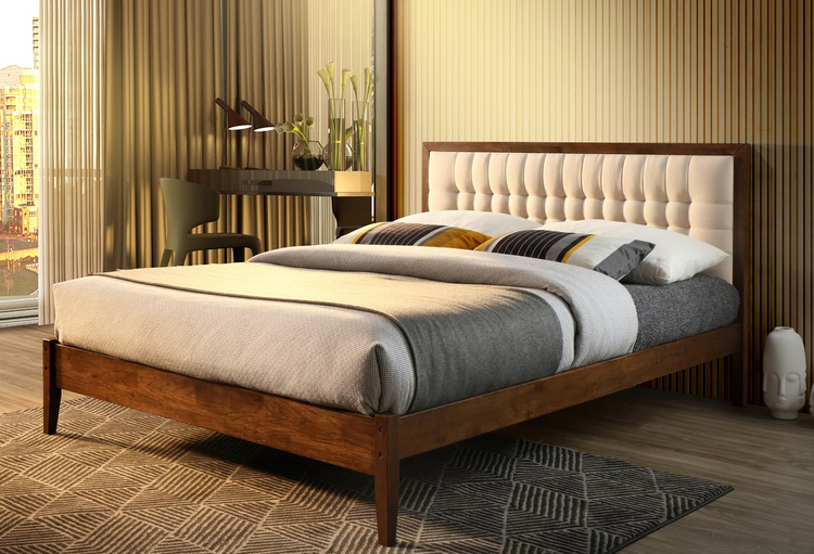 Moderní postel originálního vzhledu. Čelo postele je potaženo látkou béžové barvy. Konstrukce je ze dřeva v odstínu vlašský ořech. Rošt je v ceně, výška roštu od země je 26 cm. Matraci je třeba doobjednat. V naší nabídce naleznete rozměry matrací jak 90 × 200 cm tak 180 × 200 cm. K posteli doporučujeme noční stolek ze stejné kolekce. Dodáváme v demontovaném stavu.CASA 95151