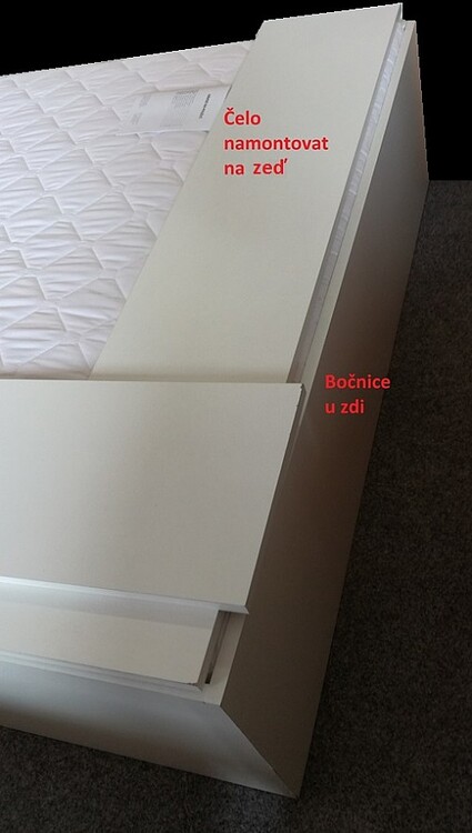 Korpus postele je vyroben z laminované dřevotřísky o tloušťce