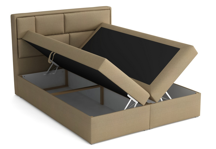 Elegantní kontinentální postel moderního vzhledu s vysokým čelem s dekoračním prošíváním. Postel se dodává zároveň s matrací – boxspring styl. Pevná konstrukce postele je potažena ekokůží v barvě bílé. Na ní se nachází vysoká bonelová matrace potažena stejnou ekokůží. Na ní je druhá tenká matrace v celku vyrobena z kvalitní hrubé PUR pěny tzv. topper (výška cca 5 cm). Ložní plocha činí 180 × 200 cm. Výška ložné plochy od země je cca 53 cm. Rozměry úložného prostoru – 2× (197×87×30 cm). Úložný prostor je k dispozici nadzvednutím matrace z boční strany postele.CASA 34013